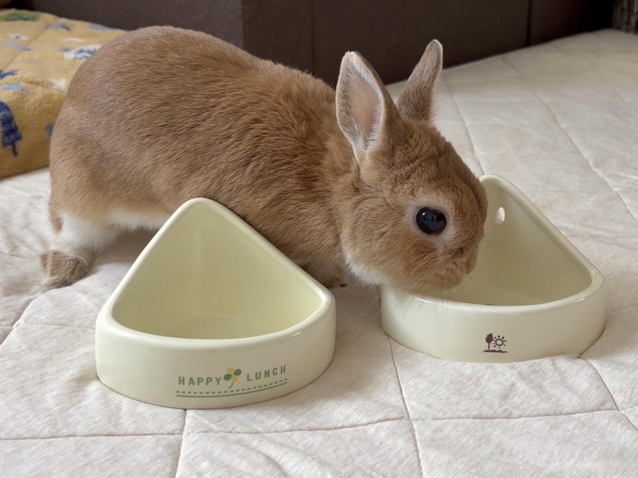 赤ちゃんの頃から8歳まで、円形の食器しか使ったことがない愛兎にとっては、食べるのが難しい形状だっただけに過ぎません。